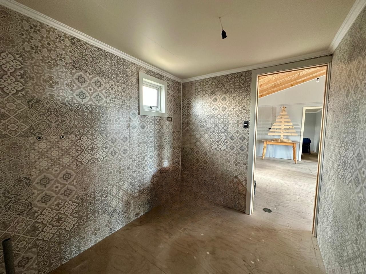 La propiedad presenta un avance significativo, con la obra gruesa y revestimientos exteriores terminados, quedando el interior listo para las terminaciones finales.