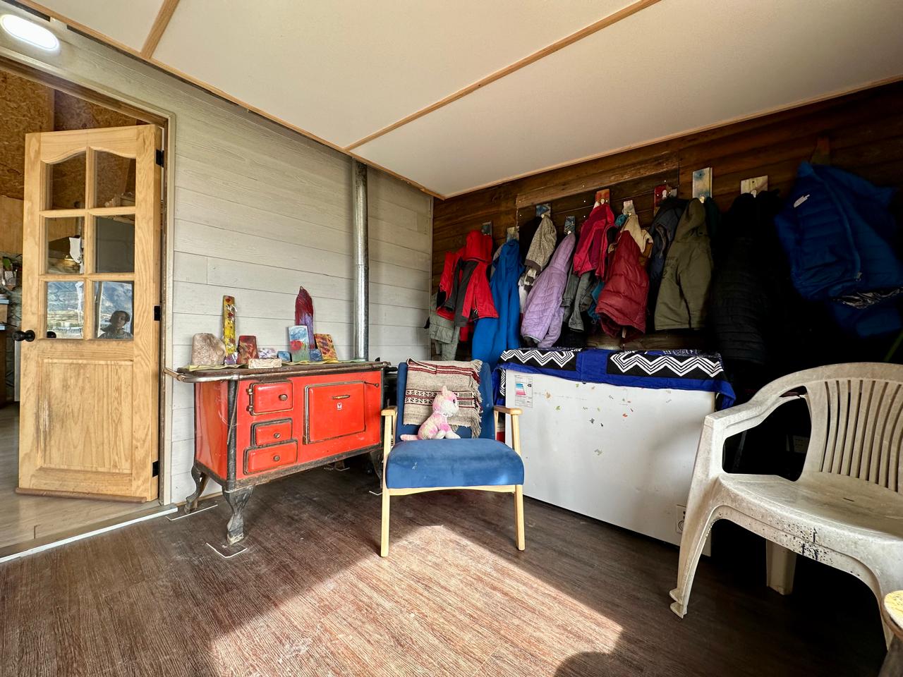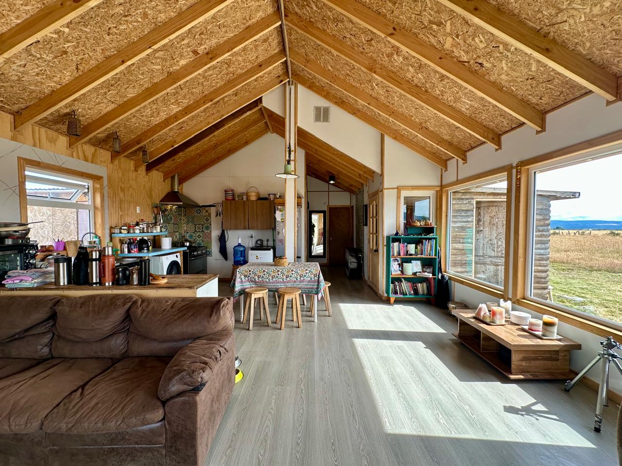 La casa principal tiene una distribución de tres dormitorios y un baño completo. El diseño interior integra el living, el comedor y la cocina en un espacio común abierto, lo que aporta mayor amplitud y funcionalidad al hogar. La vivienda cuenta con piso flotante, ventanas de PVC termopanel y además, para mayor seguridad frente al clima austral, las cañerías cuentan con un sistema de calefacción que se activa bajo ciertas temperaturas, evitando que ocurran roturas por congelamiento.-